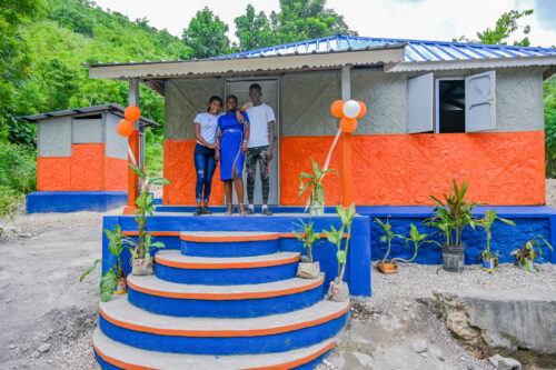 Five families in the community of Ravine Sable, Haiti, are in brand new homes, thanks to funding from HomePlan and a partnership between Hope for Haiti and the Man Dodo Humanitarian Foundation. These families each lost their homes during the catastrophic 2021 earthquake in the Sud Department. Unfortunately, the reconstruction project encountered numerous challenges, delaying the completion of the new homes, including the verification process of land and home ownership with local authorities, securing a contractor willing to work in this remote area, and the shutdown of Port-au-Prince’s port and customs, which impacted the delivery of materials.