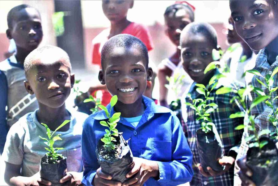 Hope for Haiti supports interactive school gardens to teach students about improved agricultural techniques, reforestation, and nutrition. Fruit and vegetables grown at each garden goes to support school lunch programs.